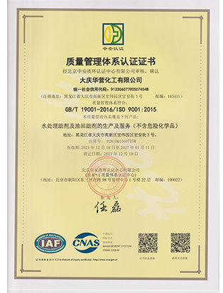 大慶華營化工有限公司成立于2006年7月10日,注冊資金3300萬元,公司類型為有限責任公司。位于大慶高新技術產業開發區宏偉園區,是一家集油田助劑產品的研發、生產、銷售和技術服務為一體的現代化高新技術企業。公司注重科技創新,公司擁有18項自主知識產權。企業承擔過國家火炬計劃重點項目、國家科技型中小企業創新項目等,2011年被科技部火炬高新技術產業開發中心評為國家火炬計劃重點高新技術企業。公司十余種產品獲得中國石油天然氣集團公司產品質量認可證書,其中粘穩型驅油劑獲國家火炬計劃重點項目證書。公司憑借多年對大慶油田及周邊油田地質情況的研究,可針對各油田地層特點調整產品的配方,更好地發揮各類油田助劑的性能。
